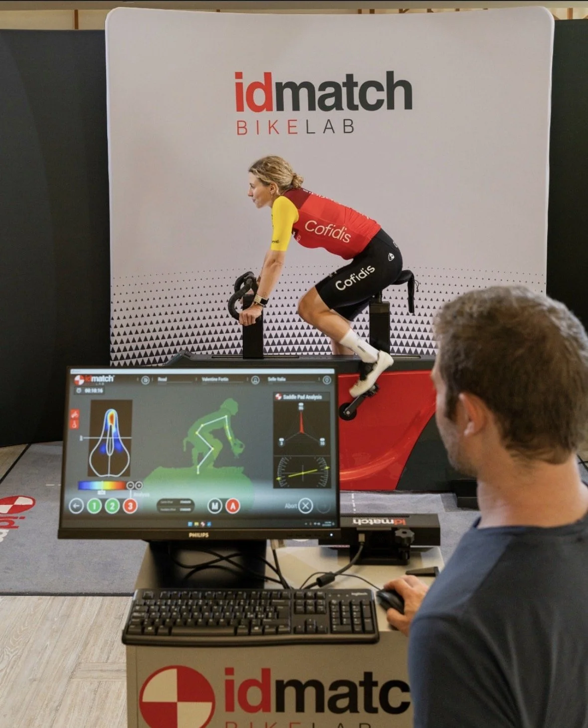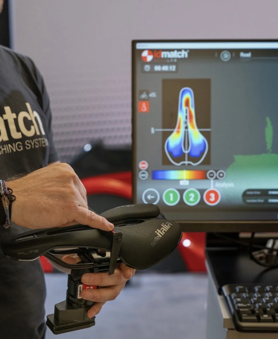 idmatch Analysis System is an innovative software that, thanks to dynamic 3D scanning, allows you to analyse the cyclist while pedalling, studying angles of movement and angular velocities without the support of markers.